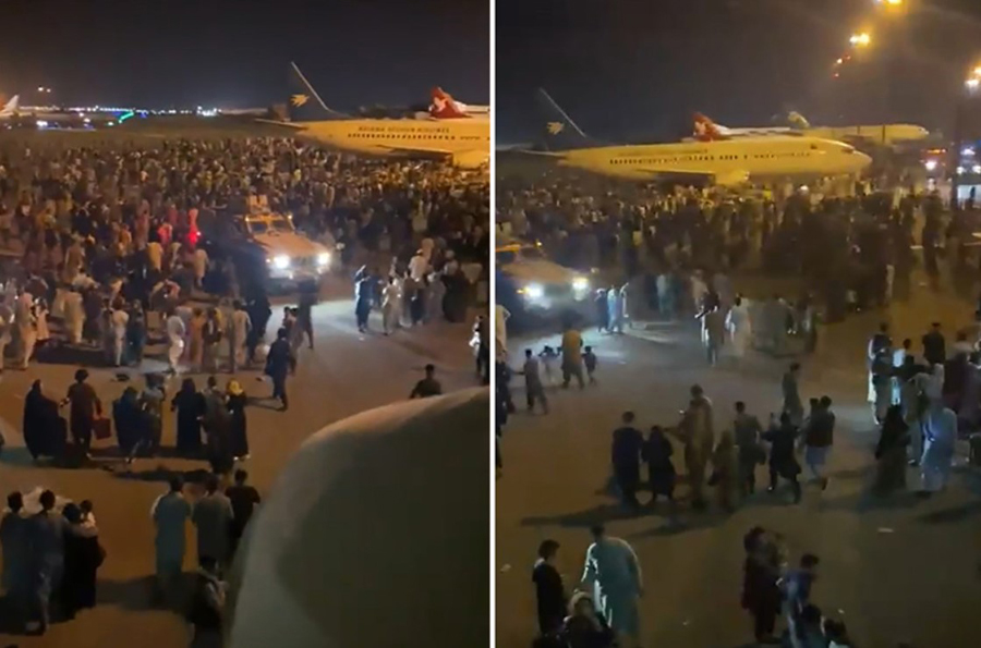 अहिले हजारौंको संख्यामा अफगानी नागरिकहरु पनि मुलुक छाड्न विमानस्थलमा पुगेका छन् । सामाजिक सञ्जालमा सार्वजनिक भएको भिडियोमा विमानस्थलको गेटमा मानिसहरुको ठूलो भीड देख्न सकिन्छ । केही यात्रुहरुलाई उडान रद्द गरिएसँगै विमानबाट निकालिएको देखिएको छ ।