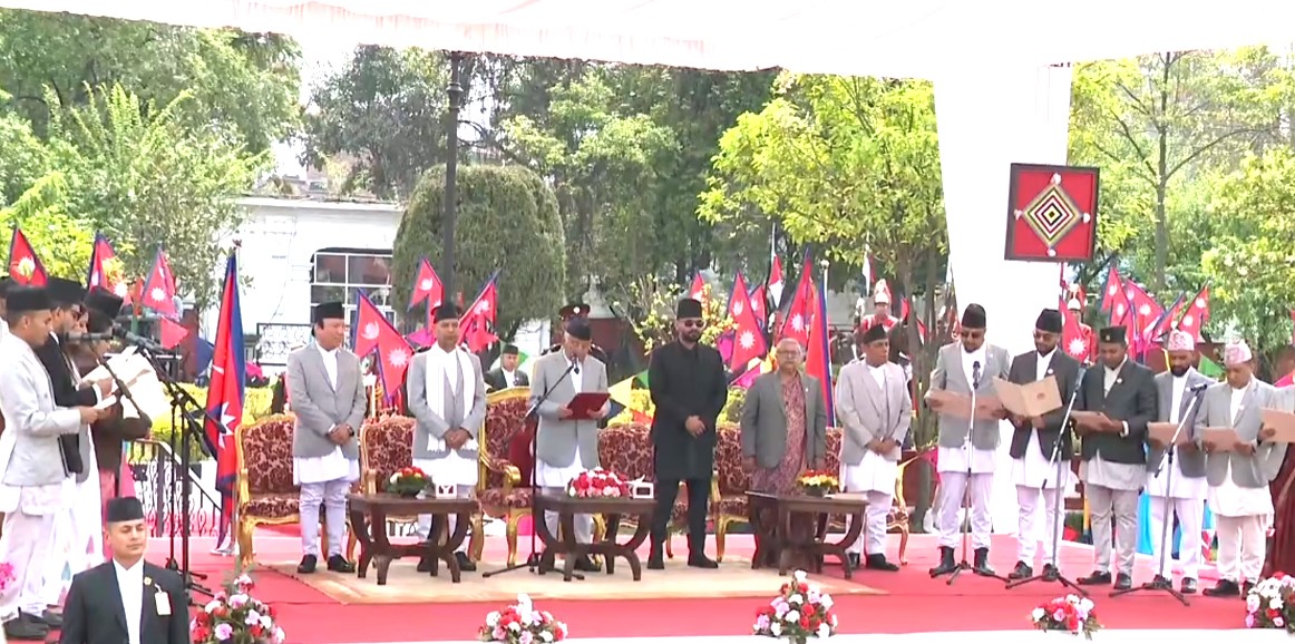 काठमाडौं । नवनियुक्त मन्त्रीहरूले शपथ लिएका छन् । राष्ट्रपति कार्यालय, शीतलनिवासमा आयोजित शपथ ग्रहण समारोहमा राष्ट्रपति रामचन्द्र पौडेलले नवनियुक्त मन्त्रीहरूलाई शपथ गराएका हुन् ।